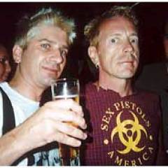 Bobby Pinn and Sex Pistol Johnny Rotten enjoying a cocktail at Serena underneath the Chelsea Hotel.
