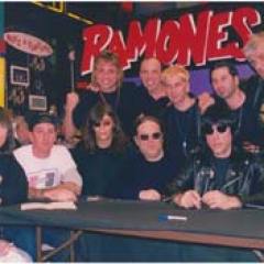Final Ramones in-store at Tower Records 4th and Broadway NYC. Bobby Pinn third from left, top row. Hey what's with the dude and the fist on the left?